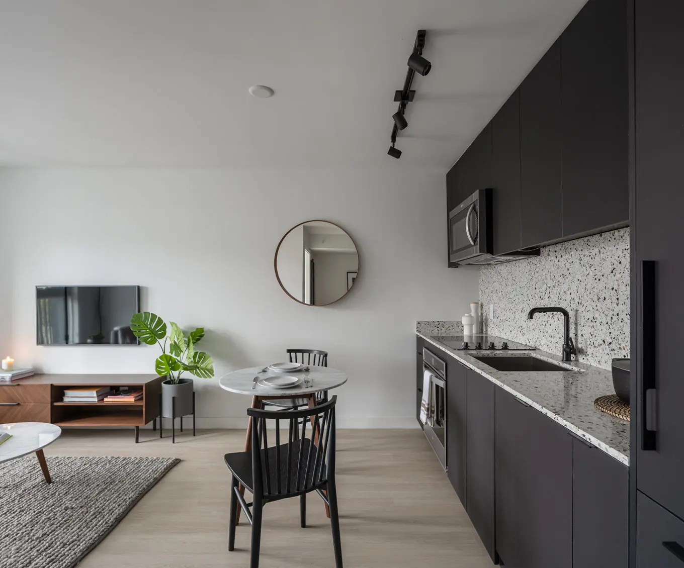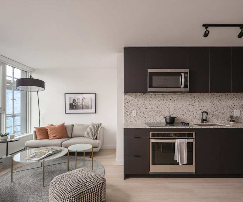 For complete living, Blood Alley offers complimentary WiFi and moving service, pet-friendly amenities, a fitness centre, a lobby & gathering place, a music & listening room amenity lounge and rooftop amenity terrace & lounge.
