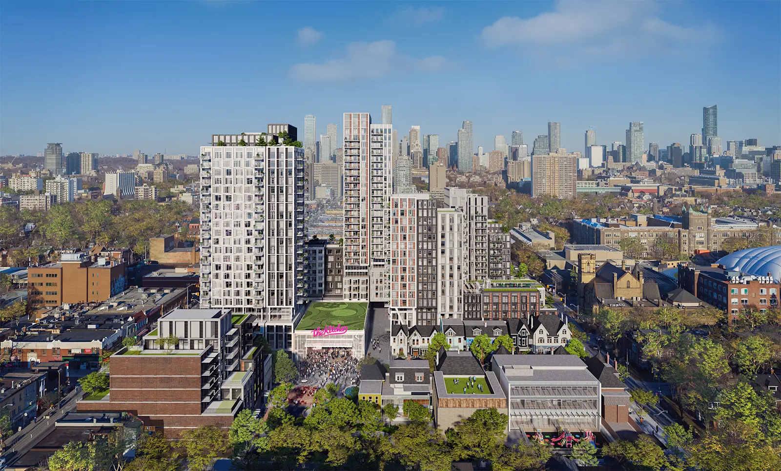 Mirvish Village has been over ten years in the making, building on the legacy of Ed Mirvish and Honest Ed's Department Store. A new community with over 890 purpose-built rental homes, a music venue and food hall, a new public park, with views of the CN Tower and Lake Ontario. Mirvish Village will be unlike any other destination in Canada.