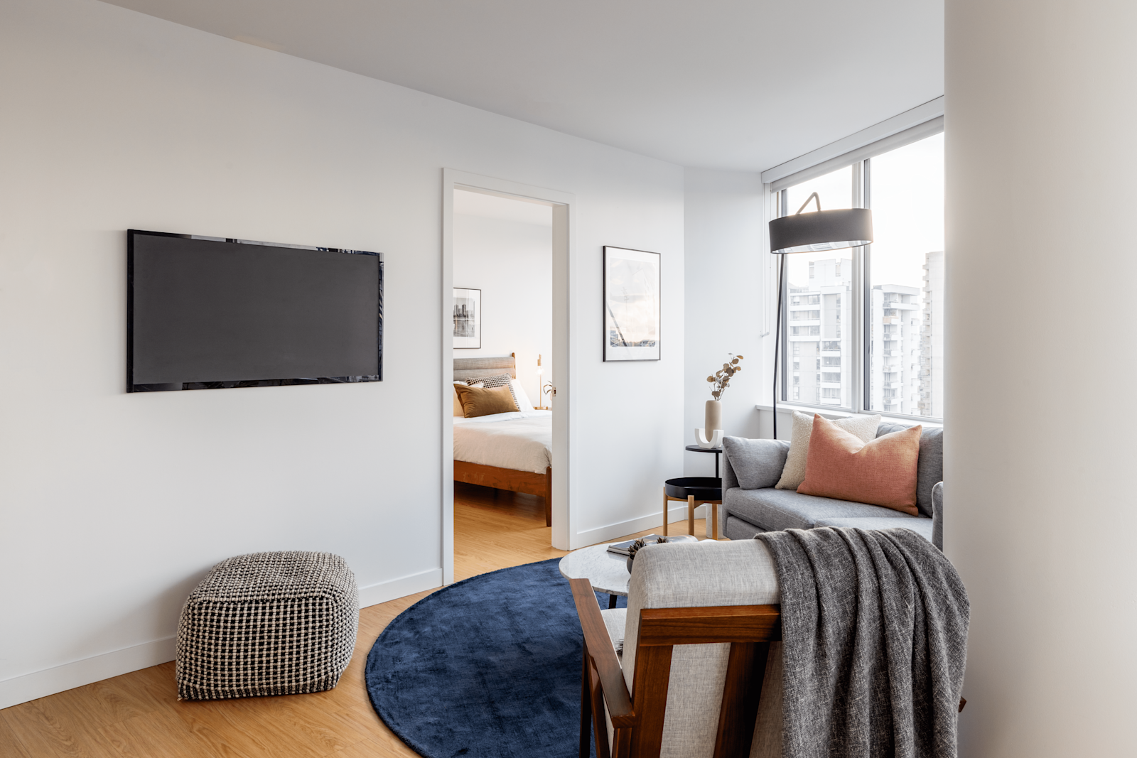 - Sliding glass panels in one-bedrooms